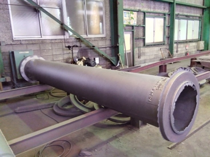 固定式立型鋳造設備を使った鋳造です。 パドルや座の付いた乱長管の鋳造もお任せください。 立型鋳造により真円度、真直度、管厚の均一度が高い製品が製造されます。 |